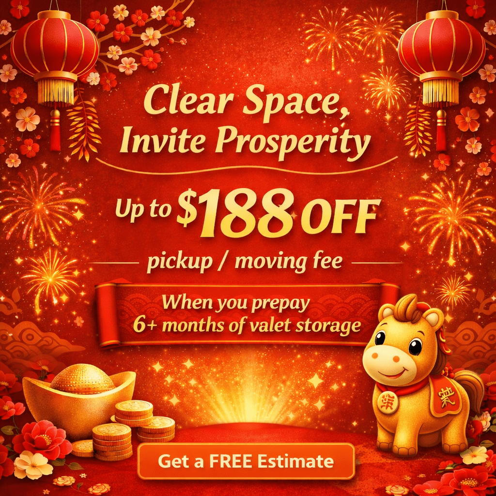 Up to $188 off pickup / moving fee when you prepay 6+ months of valet storage. Limited-time Chinese New Year promo, applicable to Space Storage only. While supplies last. Promo ends 28 Feb 2026.